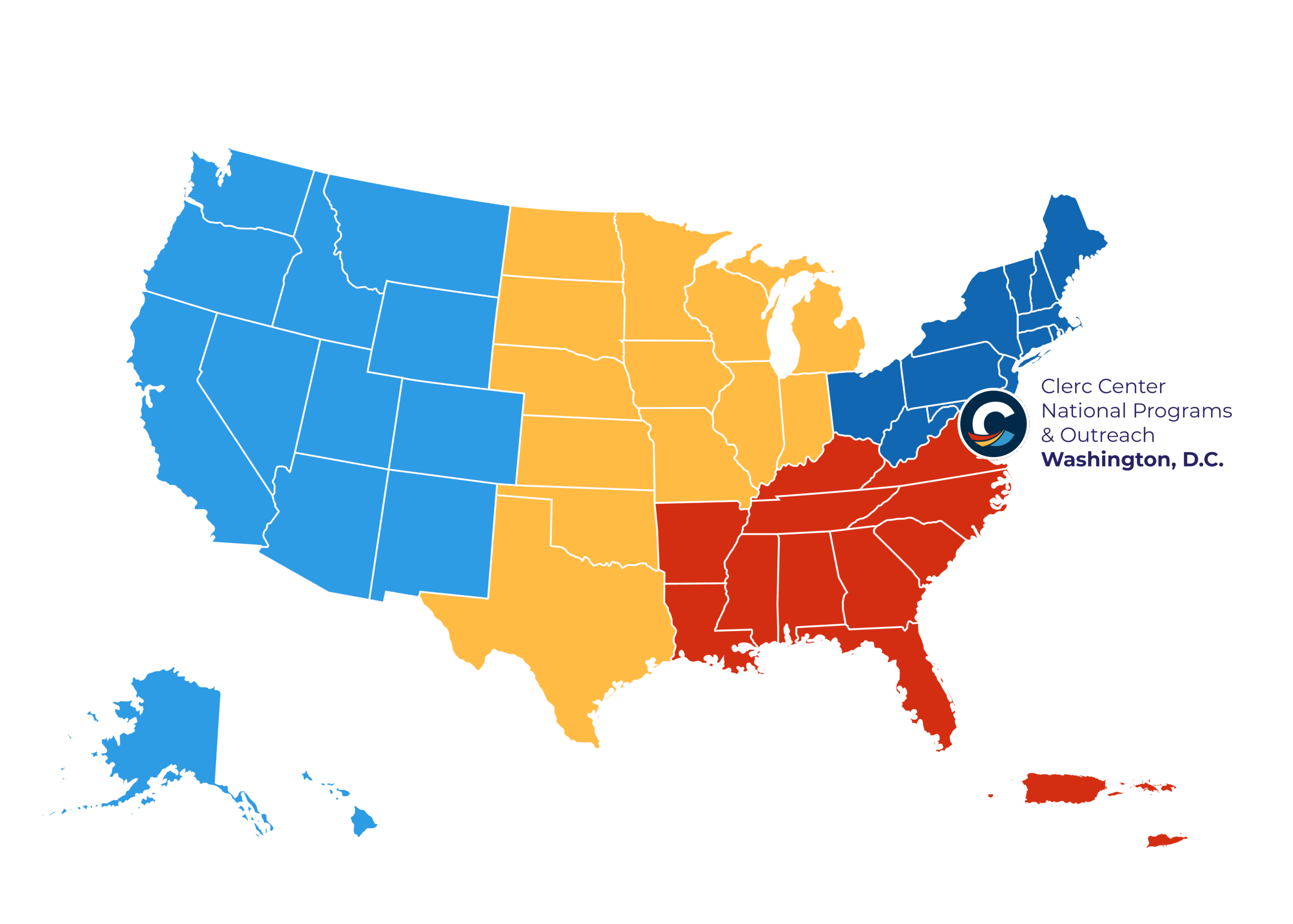 In partnership with Alabama Institute for Deaf and Blind, the Clerc Center has regional centers across the country focused on connecting families, early intervention professionals, and medical providers with resources, trainings, and programming in their area.