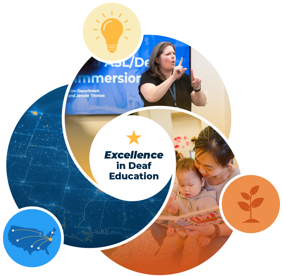 With “Excellence in Deaf Education” as our north star, by 2030, families and educators of deaf and hard of hearing children across the U.S. will feel confident, empowered, and deeply supported in raising and educating bilingual children.